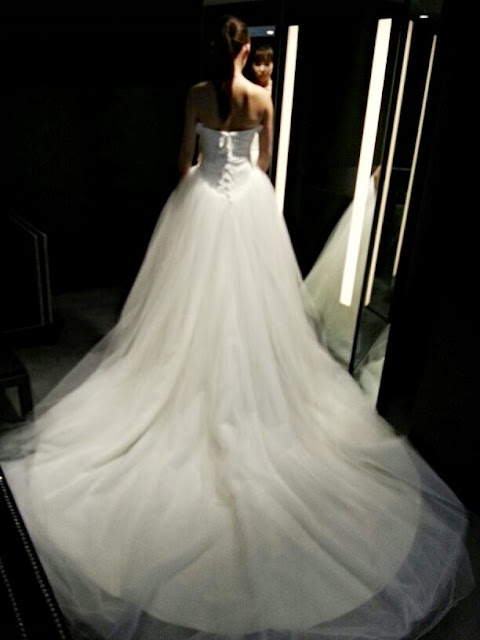 でも、試着後に写真を見て、やっぱりトレーンの裾が